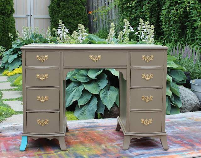 This desk seemed like a too good to be true find and it really was. Once I brought it home and started working on it, I noticed that the top veneer was detaching itself from the surface. Rather than trying to glue it down, I decided to take it off completely and reveal the wooden base. I called my trusted iron and scraper to the rescue and little by little the beautiful wood was revealed.